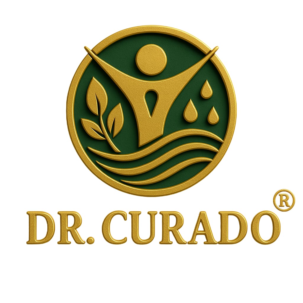 O símbolo da marca Dr. Curado® carrega elementos que representam a essência da nossa abordagem: saúde integral, nutrição viva, energia vital e conexão com a natureza.